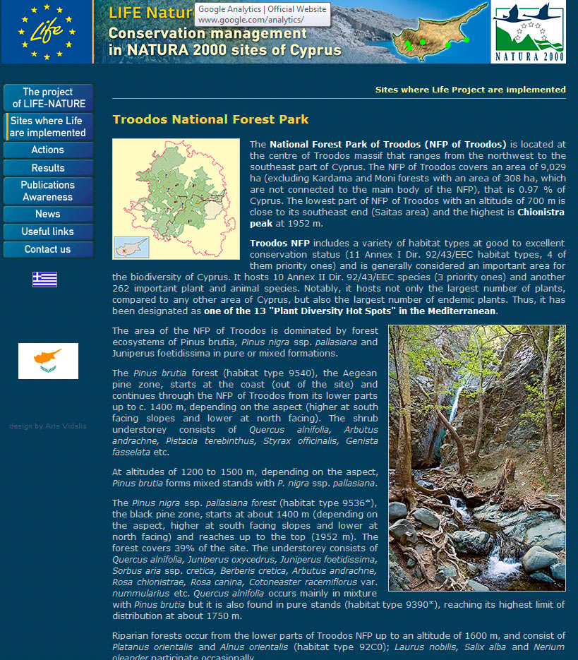 WEbsite for the project "Conservation management in NATURA 2000 sites of Cyprus" (LIFE 04 NAT/CY/000013)