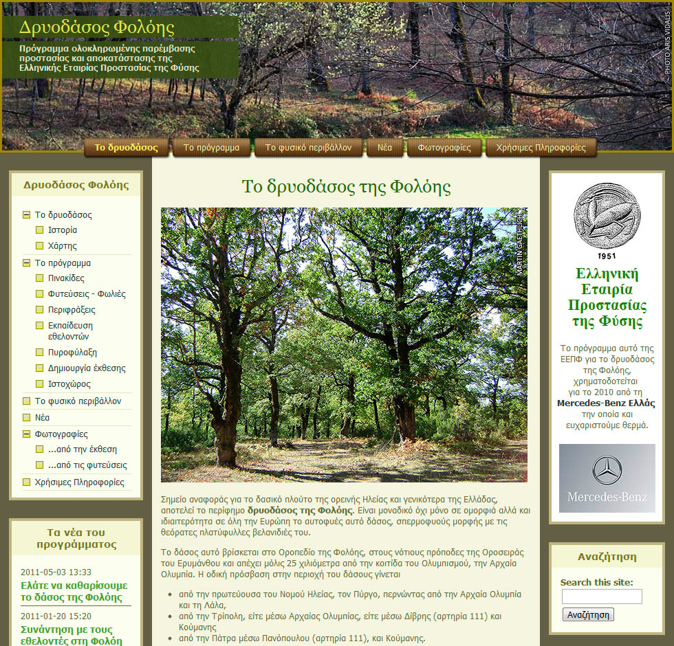 Website built for a project for the Oak tree forest of Foloi, run by the HSPN.